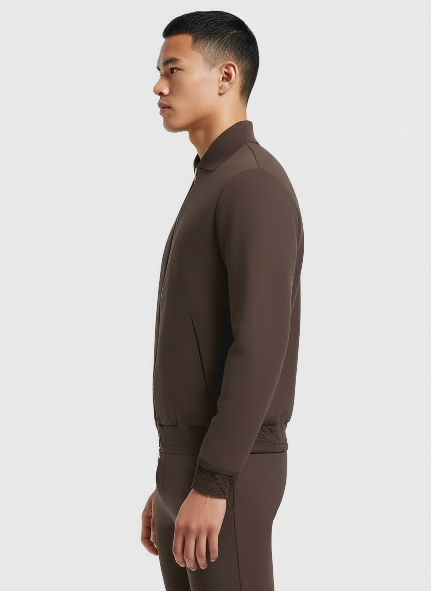 Left Side — Waist-up — left side view of the person, but framed waist-up (half-length)